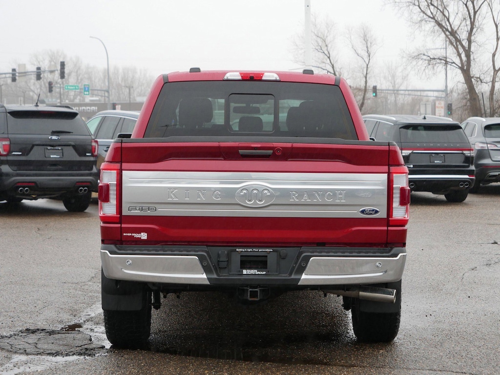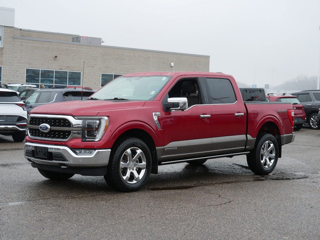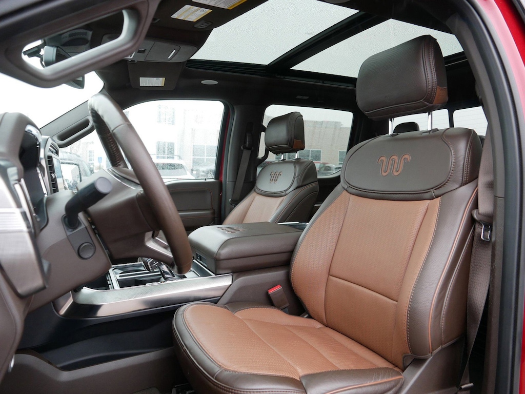 2023 Rapid Red Metallic Tinted Clearcoat Ford F-150 King Ranch 3.5L PowerBoost Full-Hybrid V6 Ask About Our Free Certified Pre-Owned Lifetime Powertrain Warranty, 1 Owner Perfect Auto Check, Dual Power Seats, Extremely Clean Inside And Out, Heated & Cooled Leather Seats, INSPECTED, Perfect Autocheck, CAME FROM A GOOD HOME !, AM/FM radio: SiriusXM with 360L, Bed Utility Package, BoxLink, Class IV Trailer Hitch Receiver, Equipment Group 601A High, Extended Range 36 Gallon Fuel Tank, Exterior Parking Camera Rear, Garage door transmitter, Heated rear seats, Heated steering wheel, Integrated Trailer Brake Controller, King Ranch Chrome Appearance Package, LED Box Lighting, Max Trailer Tow Package, Multi-Contour Driver & Passenger Seats, Panic alarm, Power Tailgate, Power-Deployable Running Boards, Pro Trailer Backup Assist & Pro Trailer Hitch Assist, Radio: B&O Unleashed Sound System by Bang & Olufsen, Security system, SYNC 4 w/Enhanced Voice Recognition, Tailgate Step w/Tailgate Work Surface, Twin Panel Moonroof, Wheels: 20" Chrome-Like PVD.